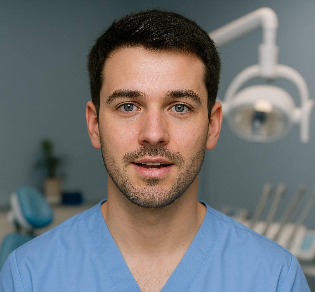 Clínica dental → un avatar presenta promoción de higiene dental.